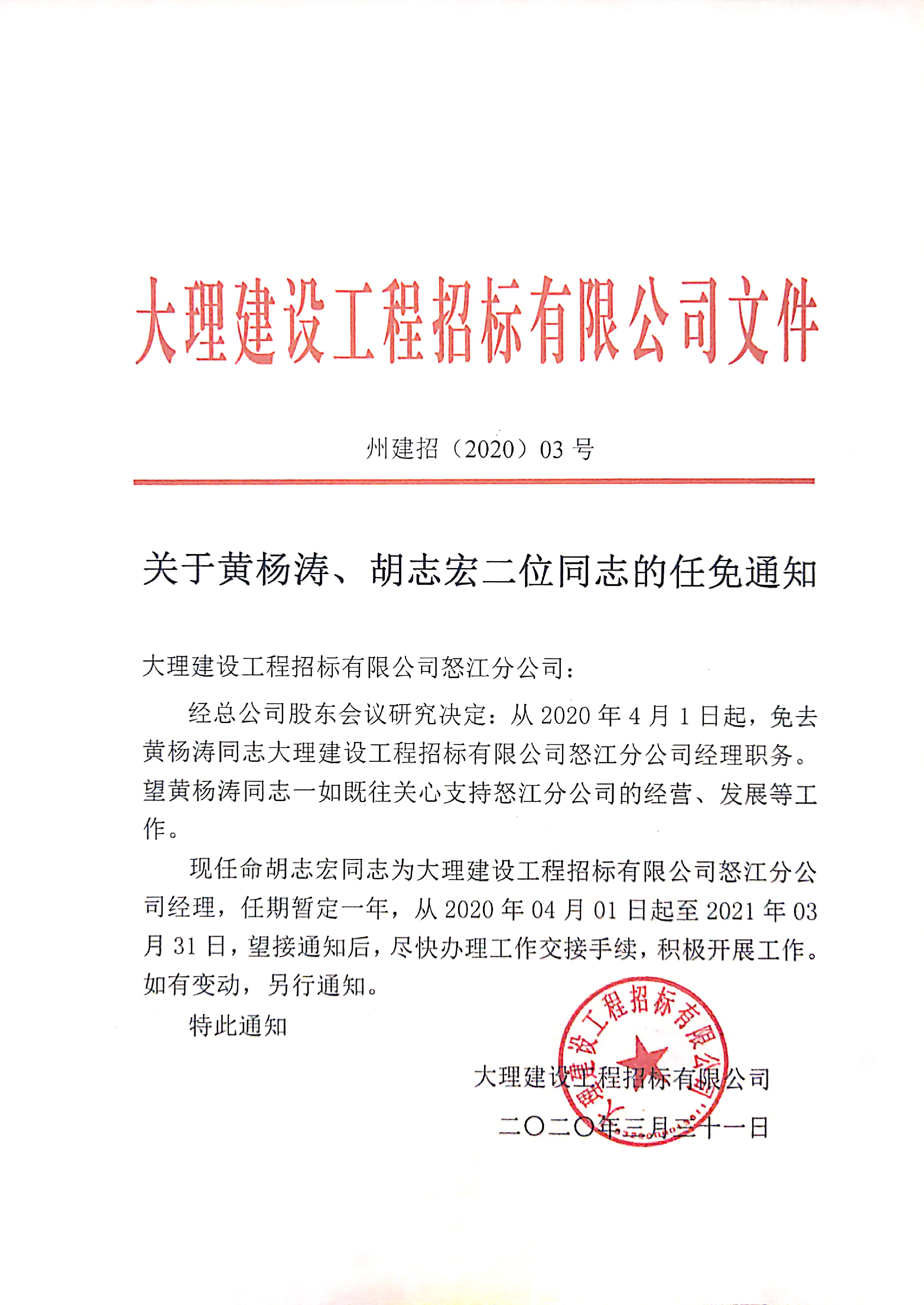 關(guān)于怒江分公司人事任免通知