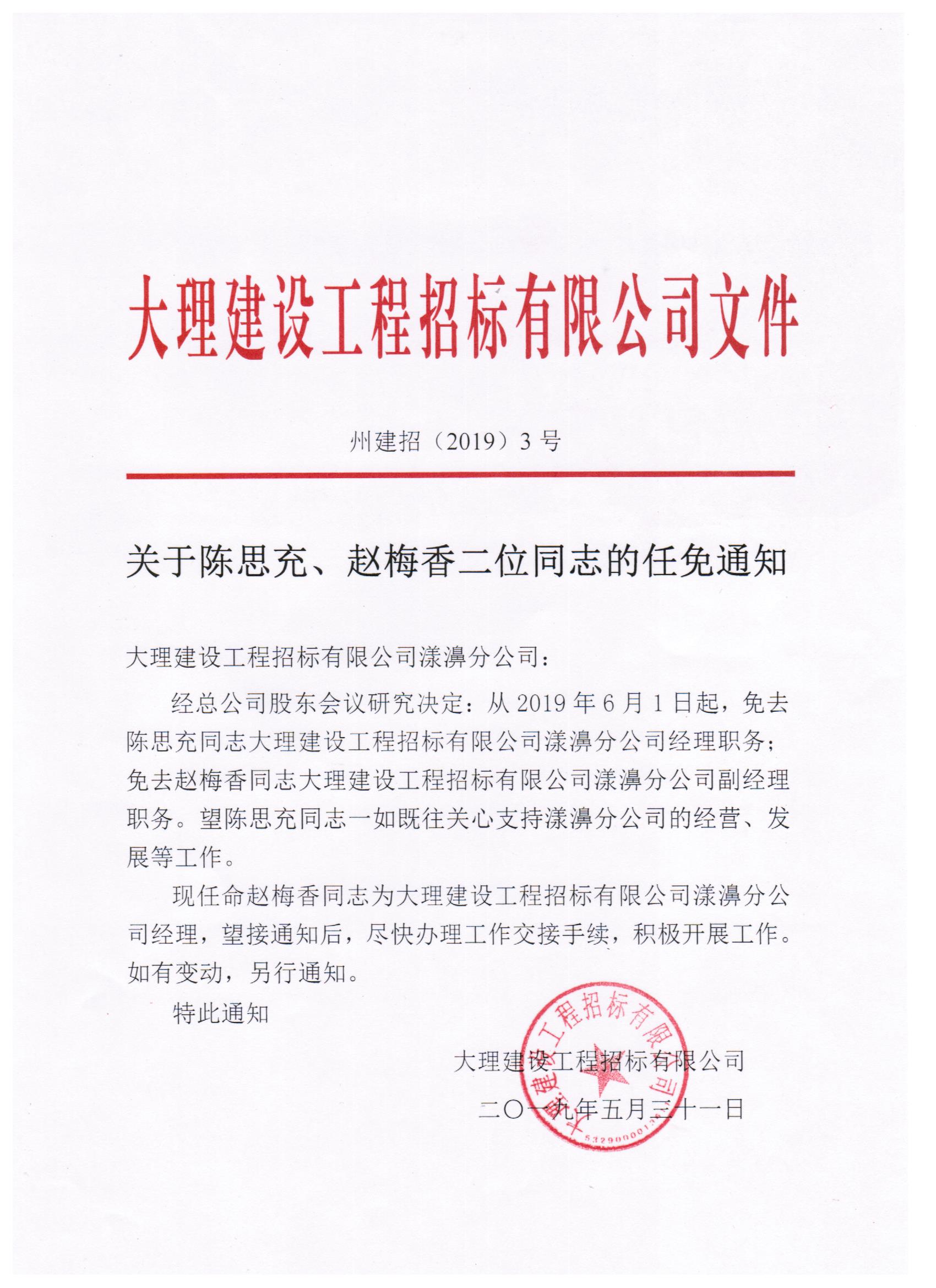 關(guān)于陳思充、趙梅香二位同志的任免通知
